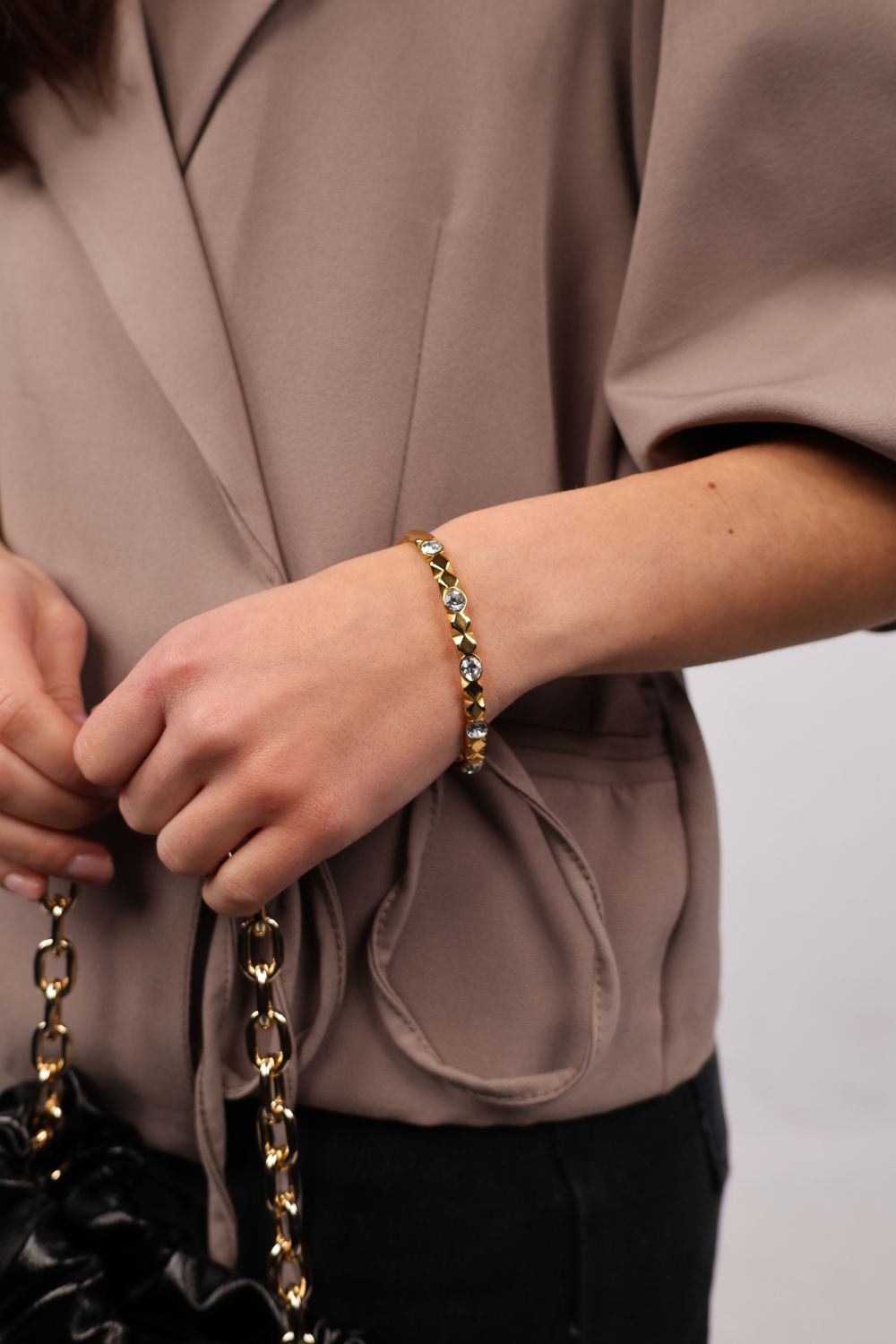 Deze armband met steentjes en een leuk design is het perfecte accessoire om je look te verfraaien. De verfijnde steentjes brengen een subtiele schittering, terwijl het unieke ontwerp een speelse en elegante flair toevoegt. Gemaakt van roestvrij staal, is deze armband niet alleen stijlvol, maar ook duurzaam, ideaal voor dagelijks gebruik of speciale gelegenheden waar je net dat beetje extra wilt.