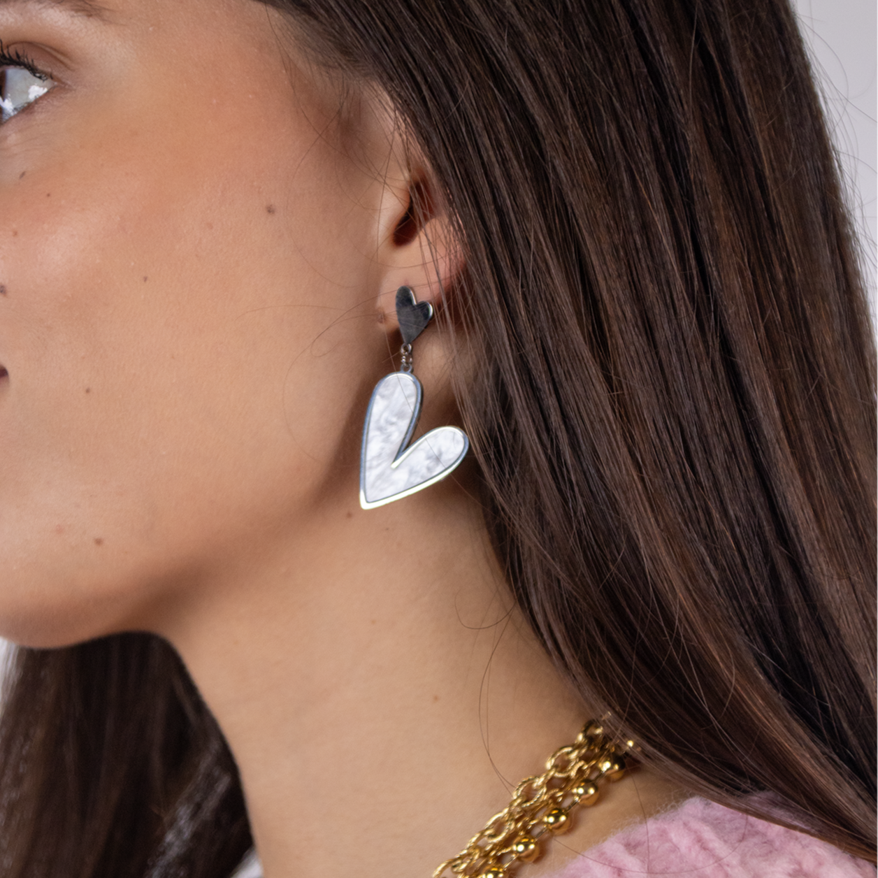 Dubbel parelmoer harten oorbellen | Zilver