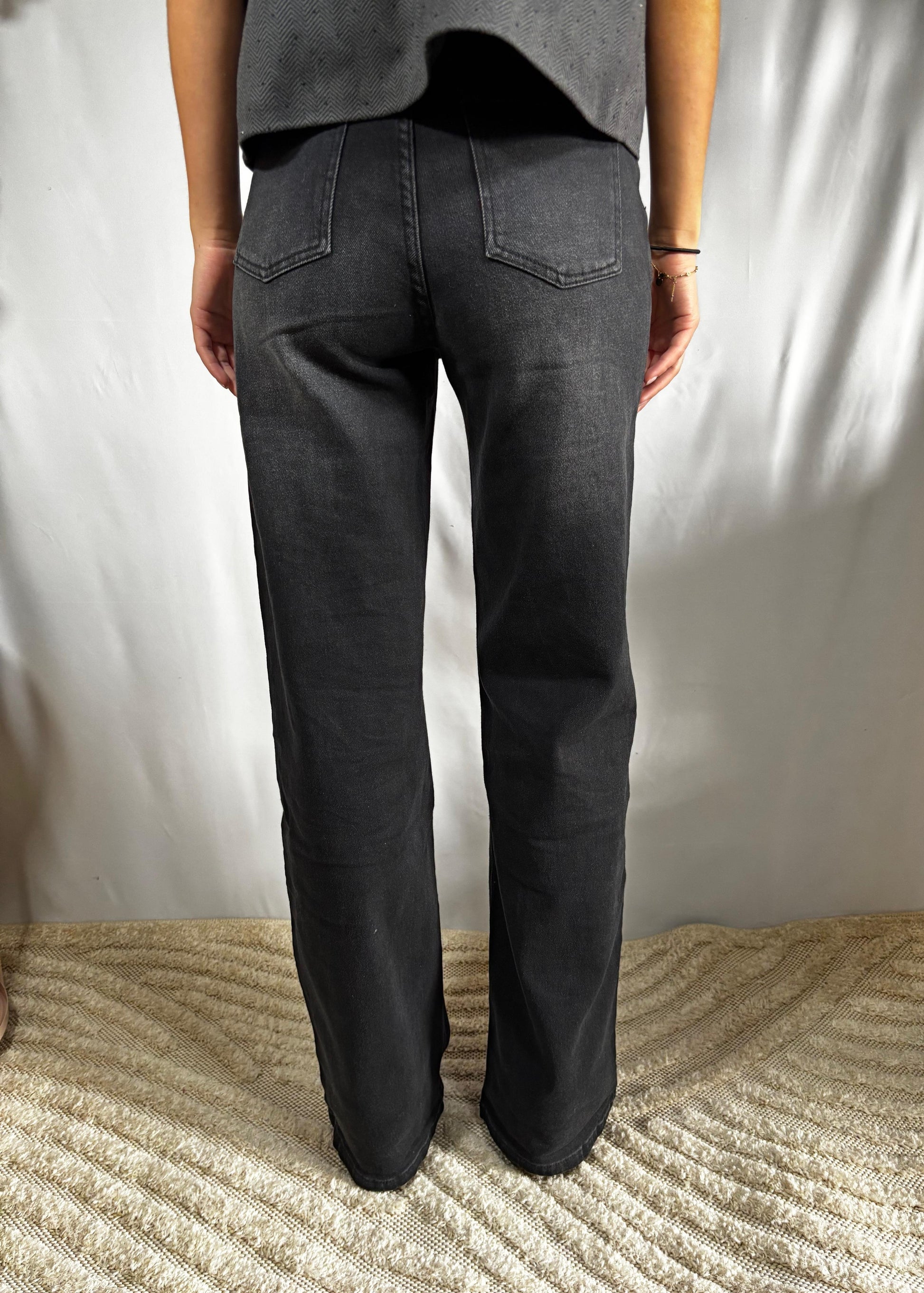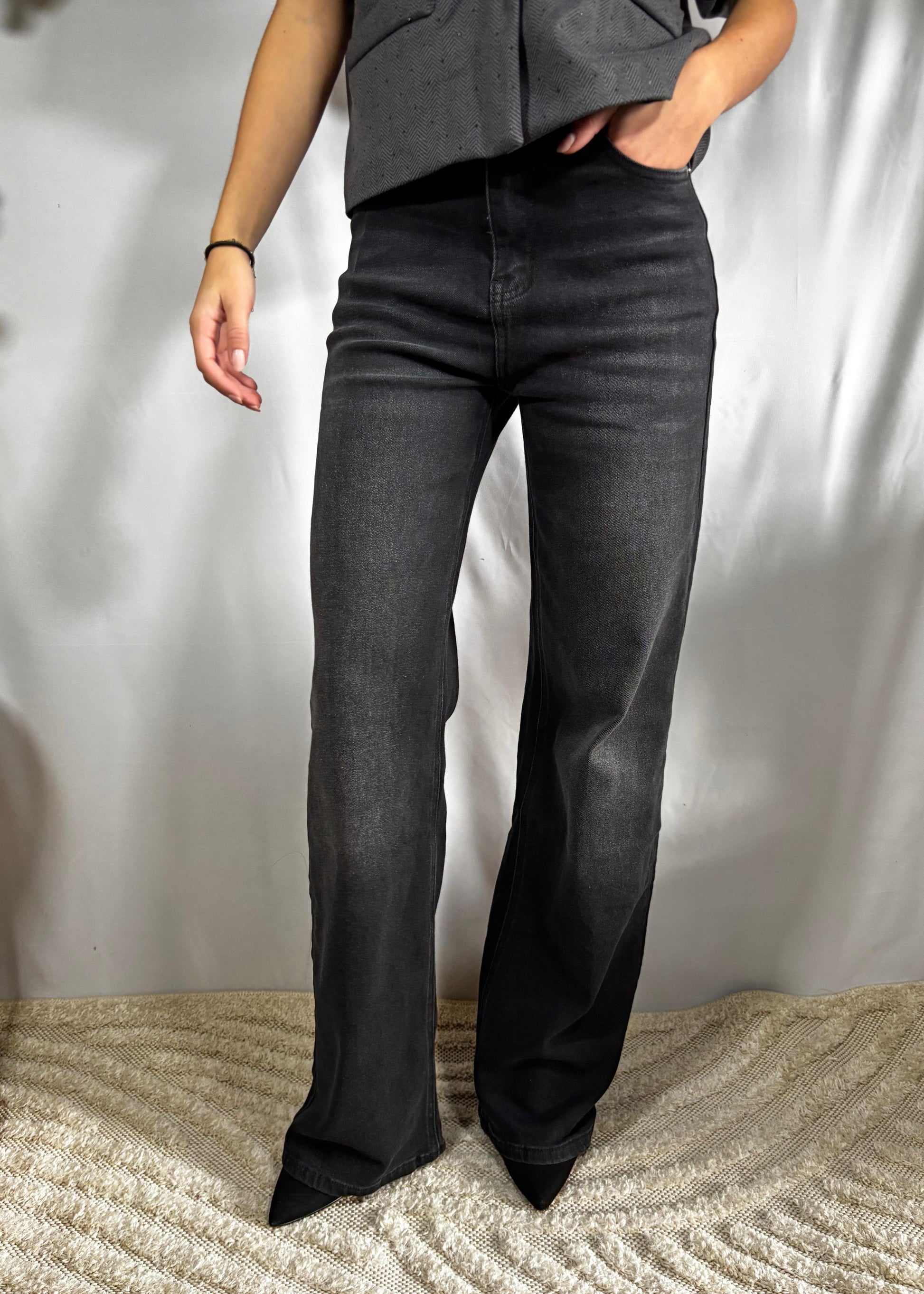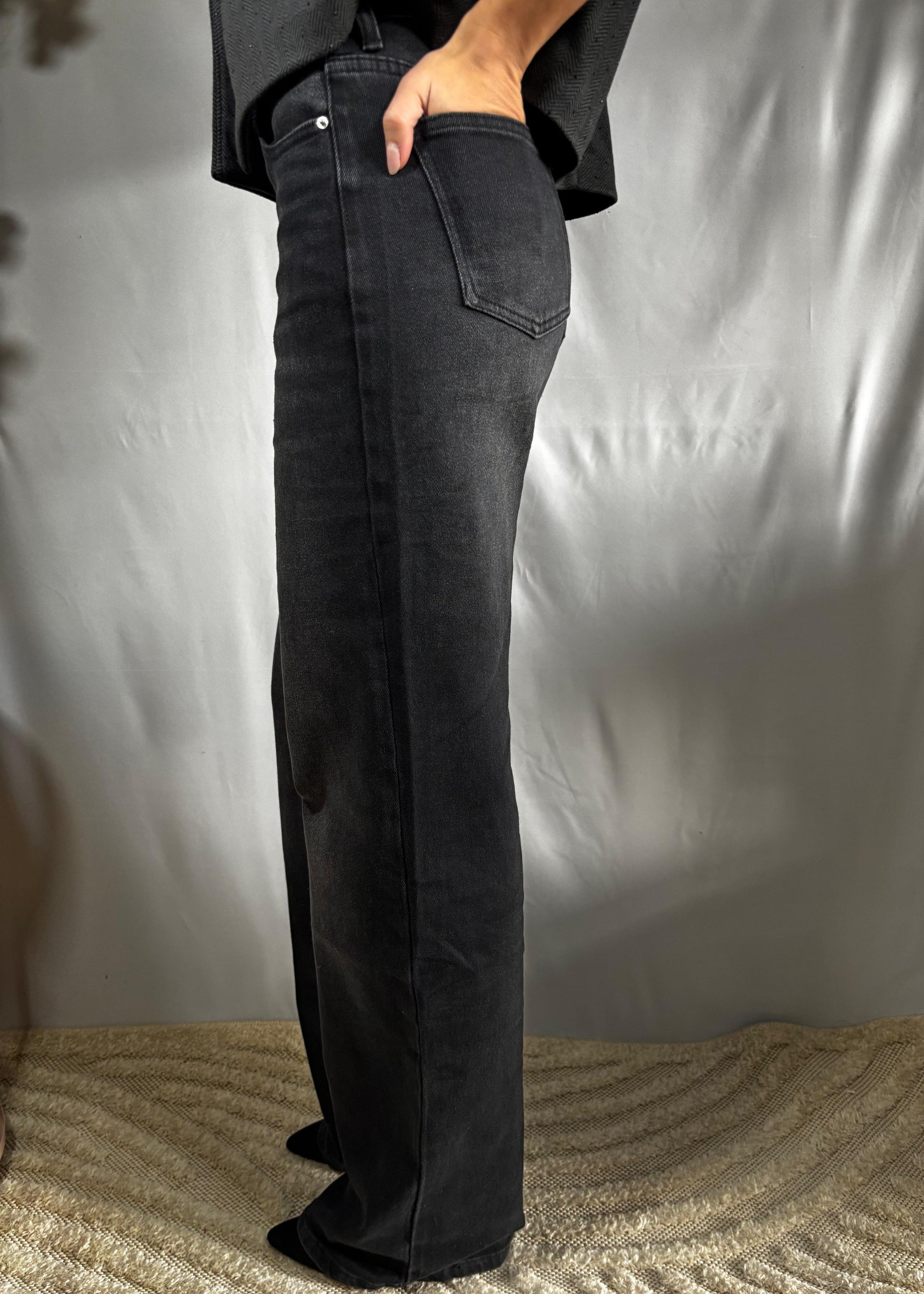 Flora | Spijkerbroek met Wijde Pijp - Stretch Zwart