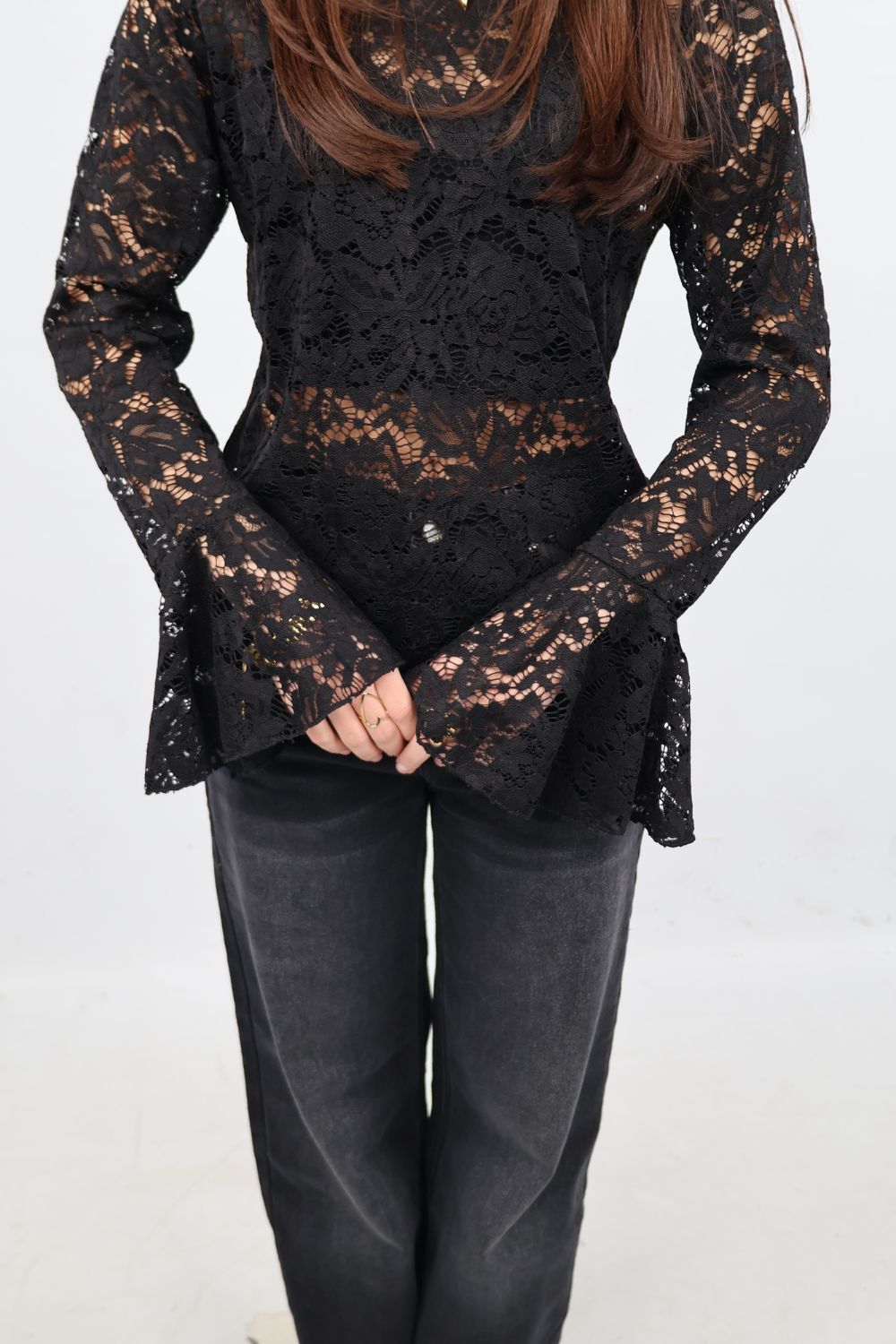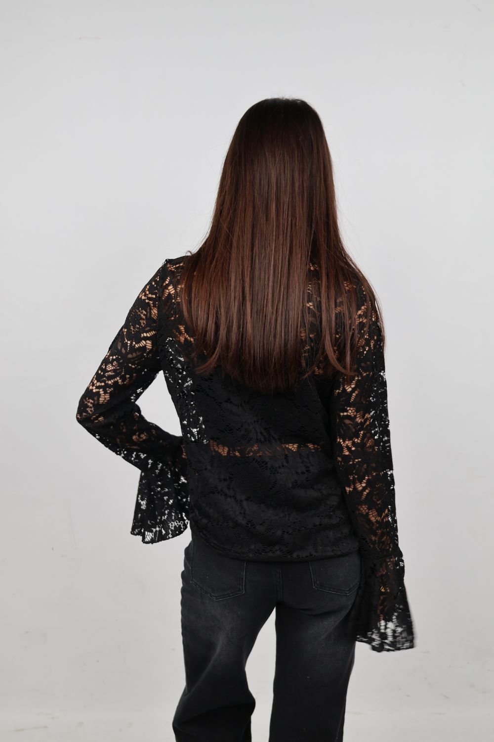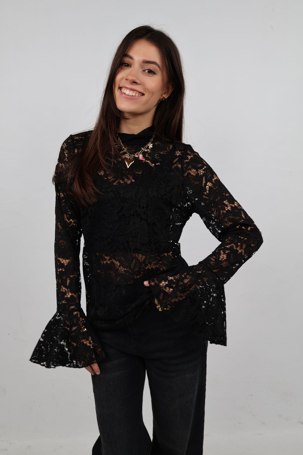 Hoe mooi is deze kanten top? De elegante en verfijnde uitstraling maakt deze top een echte must-have voor je garderobe! De delicate kanten details zorgen voor een vrouwelijke touch, terwijl de flared mouwen je look net dat beetje extra geven. Deze top is helemaal on-trend en perfect te combineren met allerlei stijlen – van t-shirts tot blazers!