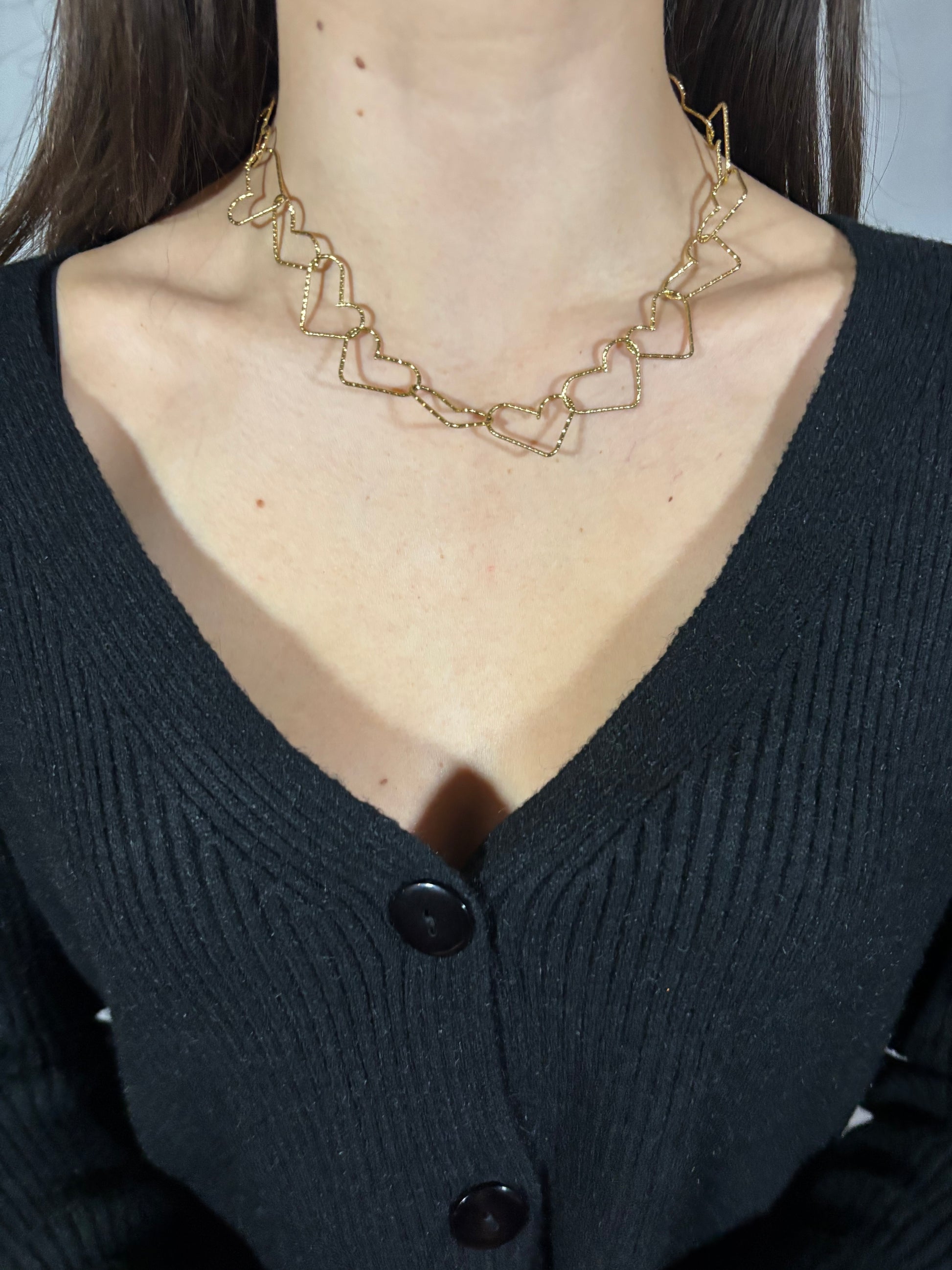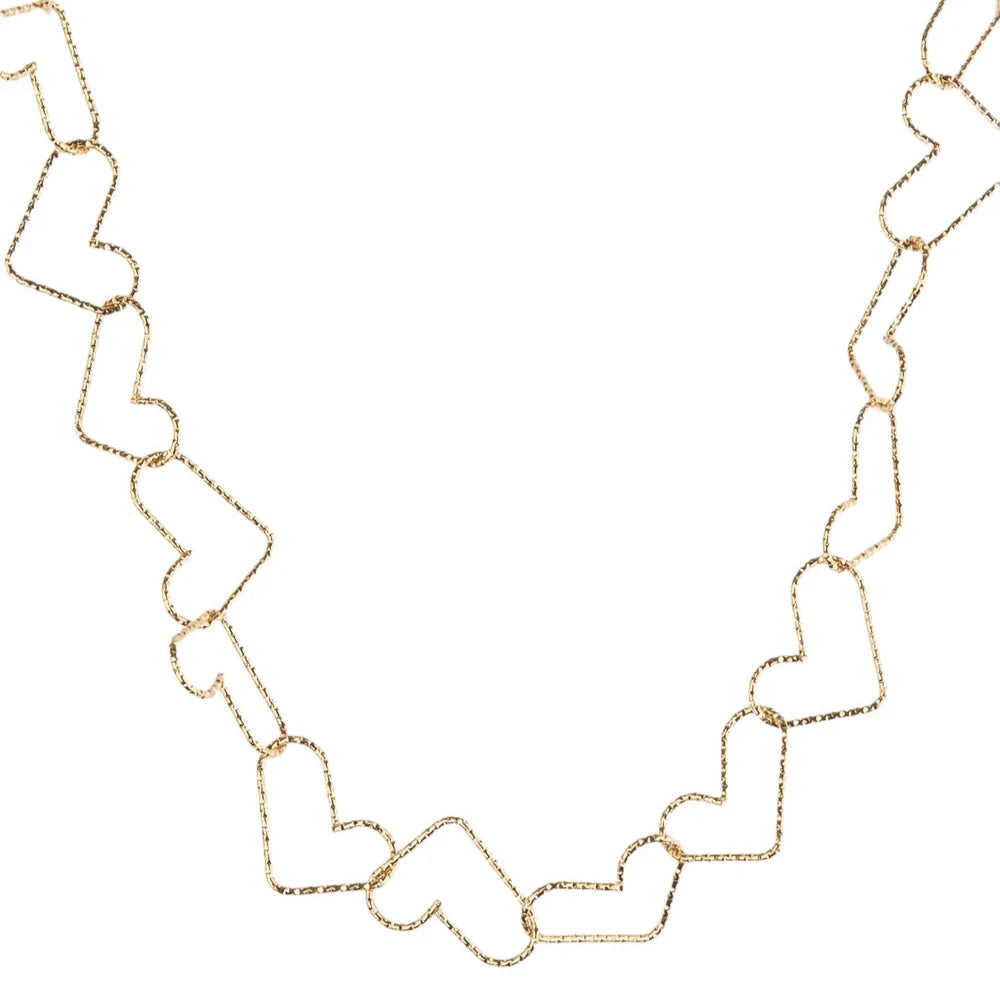 Deze lange gouden hartenketting straalt een romantische elegantie uit. Het fijne ontwerp met harten maakt dit sieraad perfect voor zowel dagelijkse looks als speciale gelegenheden. De ketting is verstelbaar (40 + 5 cm), zodat je hem op de gewenste lengte kunt dragen.
