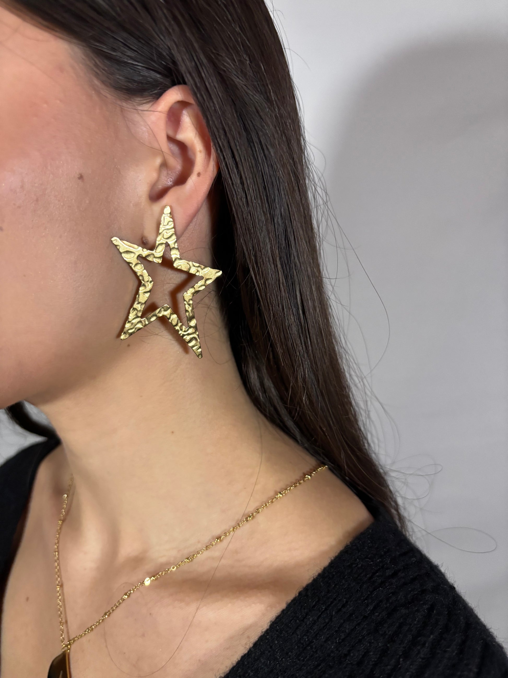 Gemaakt van roestvrij staal, behouden ze hun glans zonder snel te verkleuren. De gouden afwerking geeft de oorbellen een luxe uitstraling, terwijl het stervormige ontwerp zorgt voor een speelse, maar verfijnde look.